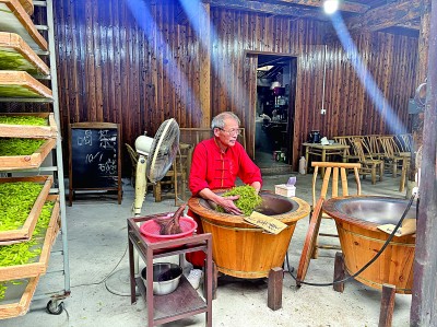 松阳明清古街上炒茶的老人。王笑妃 摄