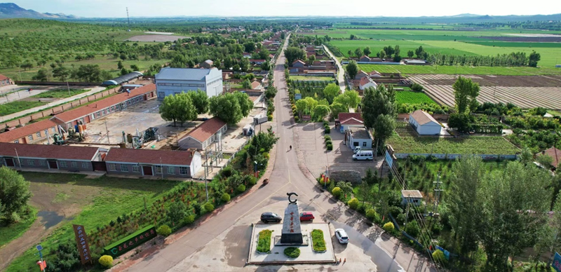 翁牛特旗赛沁塔拉嘎查村口。新华网发(赤峰市翁牛特旗科学技术学会工作人员 苏德斯琴 摄)